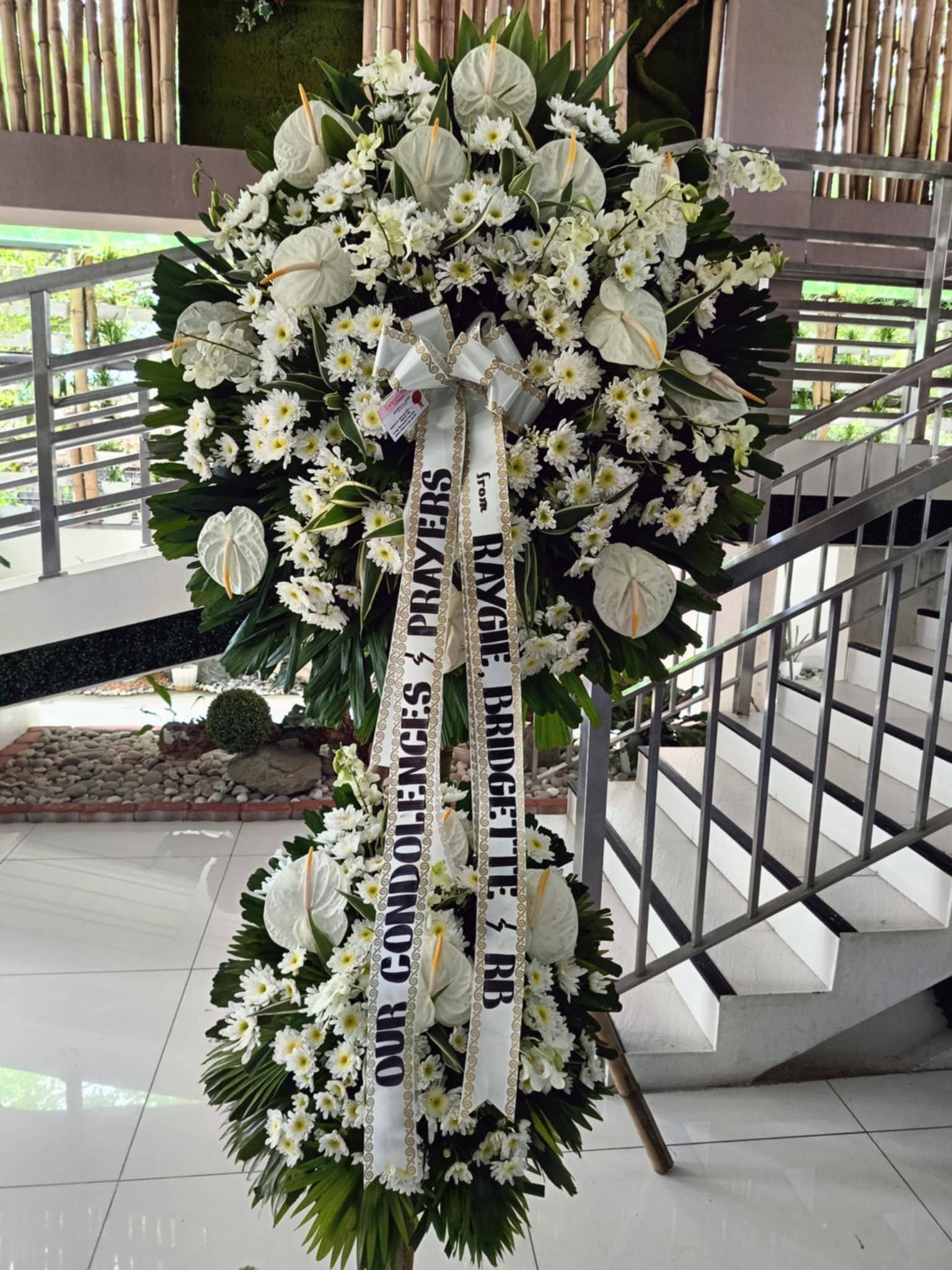 a special person in God's careOur gorgeous Red and White floor arrangement features the freshest red roses, white spider mums, white gladiolas, red carnations and more. Send an expression of your love and concern at this difficult time.Our florist's hand-design each arrangement, so colors, varieties, and containers may vary due to local availability. |